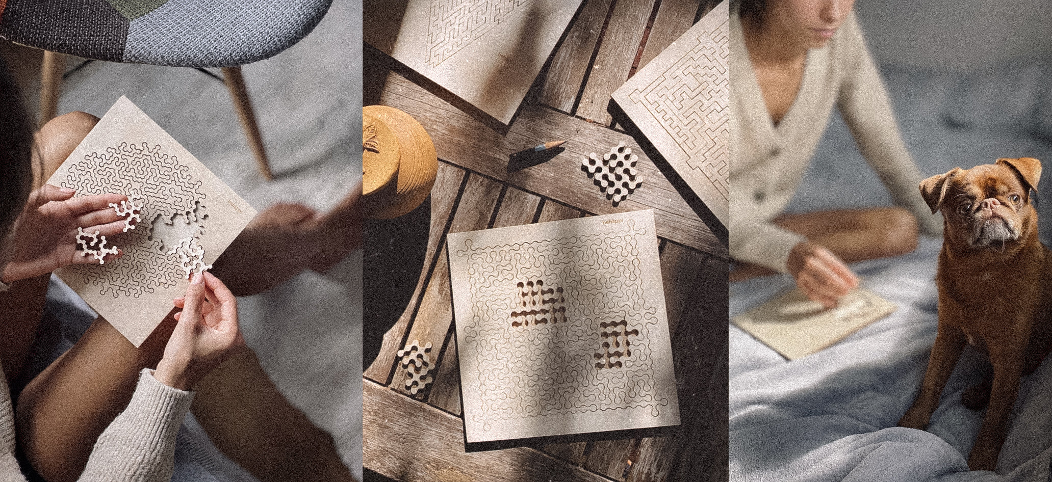 Each wooden puzzle is designed as a mindful experience — an invitation to slow down, explore and connect with the beauty of simple things.